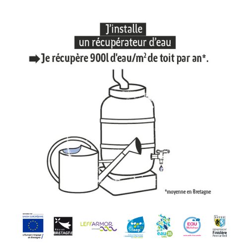 â  Astuce #5 : J'installe un rĂ©cupĂ©rateur d'eau pour rĂ©cupĂ©rer 900l d'eau/m2 de toit par an (moyenne en Bretagne)